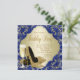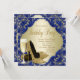 Sapatilha de salto alto brilhante azul real e convites de festa de aniversário de champanhe para mulheres. Este convite de festa de aniversário azul real e dourado é facilmente personalizado para a sua festa ou evento, adicionando detalhes do evento, estilo de fonte, tamanho e cor da fonte e texto. Este é um design impresso sem brilho real.