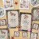 Vire-se e vire-se para um cavalo divertido cavalgando a festa de aniversário. O fundo de uma prancha de madeira sugere o interior de um estábulo com um painel preso por precintas de burlap. O painel de cor creme tem uma marca de água de cavalo. No topo, um cavalo está selado e pronto para receber convidados num dia divertido com cavalos. Um par de botas e um cowboy que são colocados na parte inferior do convite com ornamentos ao estilo ocidental acentuando o design. Disponível com produtos correspondentes.