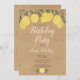 Com limões modernos verdes, este convite de aniversário botânico na moda pode ser personalizado com suas informações especiais sobre eventos e suas iniciais de monograma no reverso. Projetado por Thisnotme©