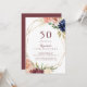 Este convite de aniversário de 50º ouro russo geométrico é perfeito para uma festa de aniversário moderna. O design apresenta uma aquarela desenhada à mão, púrpura, marinho, pincel, burgundy, flores marinhos, folhas verdes e douradas que adornam uma elegante moldura geométrica.