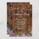 Convites Festa de aniversário Rústica Madeira Floral Roxa C