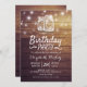 Convite de aniversário - Elegante Mason Jar e String Lights no Fundo Rustic Wood. Um Design perfeito para o seu grande dia. Todo estilo de texto, cores, tamanhos podem ser modificados para ajustado das suas necessidades!