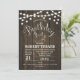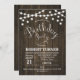 Convite de aniversário Russo - Qualquer Idade. Apresenta padrão de madeira marrom-escura, luzes de fada de cordas e fonte de script de na moda. Personalize com seus próprios detalhes. Envie-nos uma mensagem se precisar de mais personalização.