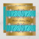 Convites Festa de aniversário Selvagem Teal Zebra Dourada D