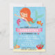 Sua pequena princesa do mar pode celebrar seu grande dia com nosso super bonito convite de aniversário da sereia. Com uma adorável sereia vermelha de cabelos rodeada por criaturas marinhas amigáveis. Não se esqueça de verificar nossa coleção de suprimentos de festa de aniversário de sereia. Não seja um peixe fora de água. Nosso cheio de sereia "em-oceano" fará um grande salto na festa da sua sereia.