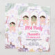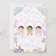 Trate seus convidados a um dia de mimos com este adorável e colorido convite de aniversário de spa! Com três meninas fofas relaxando em roupões e toalhas com máscaras faciais, tratamentos de olhos de pepino e rolos de jade, todas cercadas por acessórios de spa encantadores em aquarela — sais de banho, perfume, lixas de unha, uma escova de cabelo, velas e folhas de palmeira tropicais exuberantes — contra um fundo impresso com leopardo roxo e rosa pastel caprichoso. Este design deliciosamente divertido captura perfeitamente a experiência definitiva de dia de spa para meninas.
