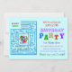 Este convite do aniversário vem com um labirinto praticável. No centro do labirinto é um partido com os balões brilhantemente coloridos. As pias batismais do texto vêm em cores do divertimento e a palavra "partido" tem as pias batismais googly-eyed garantidas para fazer qualquer um rir. Este é um convite do divertimento para os partidos dos miúdos, com todas as cores e balões brilhantes que os miúdos amam, e um jogo favorito - um labirinto para surpreender todos.