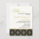 Dourada Festa de aniversário de 70 de Glitter Damask Surpresa por Designs Eugene. Celebre sua festa de aniversário surpresa com esta elegante e elegante lamaçal de ouro a preto. Na frente, há campos de modelo onde você pode colocar seus próprios detalhes sobre um fundo amarelo pálido, e na parte inferior há uma faixa de brilho dourada e uma tira de umidade sobre um fundo preto. Ao contrário, há uma cor damasco floral sobre fundo preto. NOTE: o brilho dourado é um efeito digital, todos os convites Zazzle são impressos em formato plano, não há brilho dourado real.