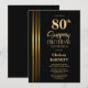 Torne a surpresa inesquecível com este convite de aniversário de 80 anos surpresa preto com listras douradas e elegante. Os modelos de texto personalizáveis permitem que você adicione o nome do convidado de honra, os detalhes secretos da festa e o local com facilidade. Seu convidado de honra vai ter uma noite de risadas e memórias inesquecíveis. Você pode escolher entre vários tipos de papel e estilos de canto para criar convites únicos que sejam do seu gosto. Além disso, você também tem a opção de baixar o convite se preferir uma versão digital.