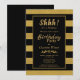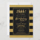 Um elegante convite de aniversário de surpresa, riscado, preto e ouro.
