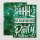 Convite de Festa de Aniversário Surpresa Verde Esmeralda Retrô! Com efeito de aquarela digital.