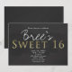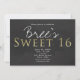 Convites de Festa de Aniversário SWEET 16 Chic Cinza Escuro & Dourado.