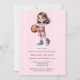 Celebre o seu atleta com este convite de aniversário de basquete de garotas divertidas! Com uma jogadora de basquete de moça vestida de uniforme cor-de-rosa com brilho azul cintilante nos calçados de topo, esta design é perfeita para uma festa com tema desportivo. Excelente para meninas que adoram basquete, este convite dá o tom para uma celebração de porcaria.