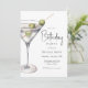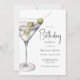 Hospedar um adulto memorável só festa de aniversário com um tema de cocktail martini. Seja em uma sala de terraços, seu bar favorito, um restaurante elegante, ou uma reunião mais íntima de casa, este tema certamente fará para uma noite cheia de diversão. Este design de convite tem um copo de martini cheio com três azeitonas em salmoura pintadas em aquarelas sutis para um fascínio sofisticado e simples. Personalize o modelo de texto fácil de usar com as informações da sua festa e você está pronto. Este convite está disponível tanto em convites impressos para envio de correio como em download digital sem papel para envio eletrônico aos seus convidados.