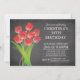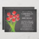 Enfie sua festa de aniversário fora do direito com nosso buquê bonito do convite de festas vermelho das tulipas que caracteriza um grupo contemporâneo das flores vermelhas da tulipa ajustadas em um fundo do quadro. Lance nossa festa de aniversário floral da flor para adultos sobre para encontrar um quadro de harmonização traseiro para um toque especial extra! Disponível em nossa loja em uma variedade de escolhas da cor da tulipa. Escolha perfeita para um aniversário de 21 anos, aniversário de 30 anos, aniversário de 40 anos, 50th aniversário.