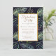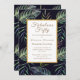 Padrão de folha tropical verde de cor aquosa elegante a preto com quadro de ouro cinquenta e fabuloso, 50º convite de aniversário