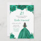 Este convite de aniversário apresenta flores florais verdes e brilhantes e uma bela princesa de cabelo castanho e um vestido elegante. Isto é perfeito para uma festa de aniversário.