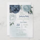 Belo convite de aniversário botânico com flores brancas, poeirentas, azuis e marinhos azuis com folhas verdes. PARA MAIS PRODUTO CORRESPONDENTE, clique na coleção acima ou entre em contato comigo.