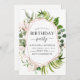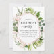 Eucalipto verde verde verde e Rosa Dourado - Convites de festas de aniversários geométricos amarelos cor-de-rosa-pincelado incluem uma bela e elegante tipografia com verde moderno e elegante para a especial 16º, 18º, 21ruas, 30, 40º, 50º, 60º, celebração de 70.