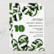 Este convite de festas temático de vôlei para um aniversário ou grupo apresenta clusters de volichões verdes, pretos e brancos nas bordas superior e inferior na frente e um cluster de solteiros que cobre o verso do convite - personalize os detalhes do partido em um fundo branco - por katz_d_zynes
