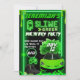 A Festa de aniversário Verde Slime apresenta esquema de cores verde limão, preto e branco. Carro esportivo de luxo de verde limão, controlador de jogos, calçados de basquete, fumaça e chamas. ©2022 Designs do Partido Sassy