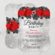 Diamante e Arco Lace, festa de aniversário Vermelha Silver. Convite de festas. Lace floral branco elegante e arco de seda vermelha. Por favor, note: todas as imagens planas, elas não têm joias ou Arcos reais!