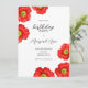 Um convite de aniversário floral feminino e moderno com papoilas de cor vermelha para convidar seus entes queridos a comemorar com você. O texto é totalmente editável, assim como o retrato no verso.
