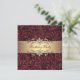 Convites de festa de aniversário elegantes vinho tinto borgonha e dourado. Este lindo convite de festa borgonha e dourado é facilmente personalizado para o seu evento adicionando os detalhes do evento, estilo de fonte, tamanho e cor da fonte e texto. Por favor, note que todos os adesivos, cartões e desenhos de convite que você encontrará na Zazzle são gráficos impressos sem joias reais, laços, relevos, rebaixados ou peças ou partes adicionadas.