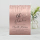 Convite de aniversário virtual elegante e chic com 60 na moda com "60 & Fabuloso" em um roteiro bonito contra um fundo de rosa dourado, com brilho de ouro rosa.
