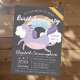 Composto por uma escrita cursiva divertida e uma tipografia manuscrita sans serif; Tudo contra um pano de fundo de preto com um arco-íris colorido e um unicórnio roxo.