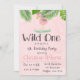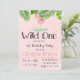 Convites Festa de aniversário Wild One Boho Pink Flamingo