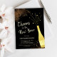 Convites Festa de Ano Novo com Champanhe Dourada Elegante