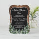 Convite de Ano Novo. Madeira marrom russa, fundo nevando e floresta nevada. Cozy Vintage country. Há mais itens disponíveis neste estilo na nossa loja. Você pode editar a design, alterar cores, fontes e adicionar texto extra clicando no link "personalizar mais".