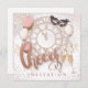 Os vossos convidados saberão que estão numa noite brilhante quando receberem este convite na moda para o vosso glam Partido da Véspera de Ano Novo. Cheers é colocado em um falso Rosa de brilho Dourado e uma face do relógio prestes a atingir a meia-noite está atrasada. Flautas de champanhe, máscara e balões com bordos de confete ao redor das bordas completam a foto. No verso, personalize facilmente o texto para seus próprios detalhes.
