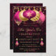 Celebre o Ano Novo com elegância e brilho usando este convite de Ano Novo Rosa e Dourado. Com tons ricos de rosa combinados com ornamentos dourados cintilantes e luzes festivas brilhantes, este design luxuoso captura a alegria e a sofisticação de uma celebração glamorosa de Ano Novo.