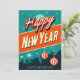 Inicie o Ano Novo com estilo usando este convite de festa festivo, projetado com um ousado charme moderno de meados do século! A frente apresenta uma impressionante saudação "Feliz Ano Novo" com "convite de festa" abaixo, complementada por uma paisagem urbana retrô, estrelas cintilantes, fogos de artifício e ornamentos clássicos - capturando perfeitamente o charme de uma celebração clássica. A parte traseira mantém a simplicidade com um fundo verde-azulado coordenado e espaço para todos os detalhes da sua festa, incluindo data, hora e local. Ideal para quem ama um toque de estilo vintage em suas festas. Visite minha coleção de Ano Novo Moderno de Meados do Século para itens correspondentes.
