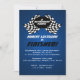 Terminado, feito, aposentado! Celebrar a aposentadoria com este convite de tema de corrida de bandeiras cheias de diversão a azul.