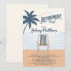 Relaxe e afaste-se enquanto você viaja para a aposentadoria com este charmoso convite! No coração de uma cena de praia serena fica uma cadeira de praia de vintage, convidando hóspedes a se imaginarem se balançando ao sol. Uma palmeira graciosa se move suavemente na brisa, adicionando ao ambiente tranquilo. Capture a essência do lazer e da aventura com este convite perfeito para a sua celebração de aposentadoria!