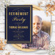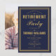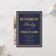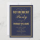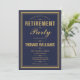 Um convite de festa de aposentadoria elegante em azul marinho e dourado pode ser personalizado com as informações do seu evento especial e foto especial no verso. Criado por Thisisnotme©