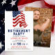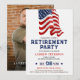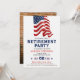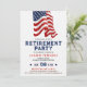 Cumprimente uma carreira notável e celebre a jornada rumo a uma aposentadoria bem merecida com nosso Convite de Festa de Aposentadoria Patriótica. Criado para homenagear aqueles que serviram nas forças armadas, polícia, corpo de bombeiros ou se formaram em uma escola militar, este convite exala orgulho e patriotismo. A frente ostenta um design descolado com a bandeira dos EUA pintada contra um fundo branco simples. Ele permite personalização, permitindo que você adicione um toque pessoal com uma foto e texto. Seja uma festa de aposentadoria para um soldado, veterano do exército, policial, militar da marinha, bombeiro, membro da força aérea ou graduado de uma escola militar, este convite estabelece o tom para uma celebração emocionante. Este convite versátil também pode ser usado para eventos do Dia da Independência, exibindo cores como vermelho, branco e azul.
