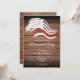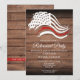 Este convite de festa de aposentadoria de bombeiro thin red line pode ser personalizado com as informações da sua festa em tipografia elegante em um fundo de madeira rústica. Criado por Thisisnotme©
