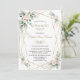 Desenho de cartão encantador com flores delicadas de cor de rosa aguadas, folhas verdes arejadas e douradas, uma moldura dourada falsa, divisor floral, em um fundo branco. Use a ferramenta Personalizar para adicionar suas informações. Para itens correspondentes, visite minha Coleção Floral Verde Dourado.