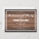 Um convite de festa de aposentadoria sofisticado pode ser personalizado com as informações do seu evento especial em um fundo de painéis de madeira rústica. Criado por Thisisnotme©