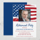 Convites de festa de aposentadoria militar com bandeira americana moderna. Estes convites de festa com bandeira americana são perfeitos para aposentadorias militares, festa de despedida de soldados, despedida de desdobramentos militares, celebração de boas-vindas em casa para militares e formaturas militares. Personalize este convite de bandeira americana com o evento do seu soldado, nome e detalhes da festa.
