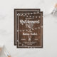 Este convite de festa de aposentadoria rústico apresenta luzes de corda em um fundo de madeira escura. Clique no botão personalizar para mais flexibilidade na modificação do texto! Variações deste design, cores adicionais, bem como produtos coordenados estão disponíveis em nossa loja, zazzle.com/doodlelulu*. Entre em contato conosco se você precisar deste design aplicado a um produto específico para criar seu próprio item correspondente único! Muito obrigado por visualizar um DoodleLulu by 2 june bugs design!