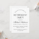 Um convite de festa de aposentadoria simples preto e branco: apenas texto preto em fundo branco.