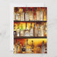 Convite de festa de bar com uma representação artística de garrafas de licor e bebidas alcoólicas dispostas em prateleiras para o bar de fundo de um estabelecimento. Aquarela digital criada usando software de geração de IA. Perfeito para festas de 21 anos, despedidas de solteiro e mais. Personalize com detalhes do evento.