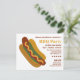 Convide seus amigos para uma festa de churrasco para comemorar a nova casa com este convite. Ele tem uma salsicha de cachorro-quente em um pão com alface e mostarda e molho de chili na paleta colorida vintage. Personalize facilmente com os detalhes do seu partido. excelente também para celebrar aniversários adultos e festas de verão.