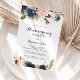 Este convite de festas floral de caligrafia para casa é perfeito para uma família e amigos, uma nova casa se reunirem para celebrar. O design apresenta belas flores azuis escuras, azuis, marinhos, rosa, pinceladas, douradas e folhagem verde pintadas manualmente, amontoadas em buquês elegantes.