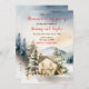 Este belo e festivo convite para o aquecimento doméstico de aquarelas apresenta uma cabana russa de inverno rodeada de neve, montanhas e árvores. Há animais adoráveis, como uma rena e um cachorro, e também um boneco de neve, cogumelos, bolotas e folhagem. O texto combina o script manuscrito e as fontes sans serif para uma aparência na moda e moderna. Isto é perfeito para uma festa de inverno ou de Natal.